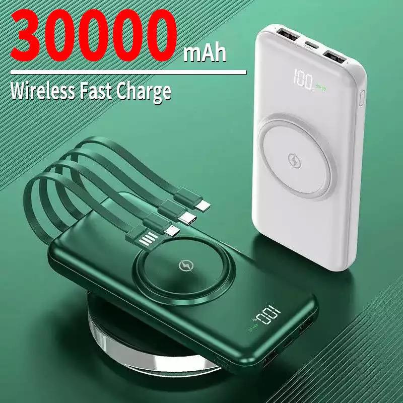 شاحن لاسلكي سريع الشحن بنك الطاقة 30000mAh شاحن محمول بنيت الكابلات 4USB العرض الرقمي بطارية خارجية آيفون هواوي