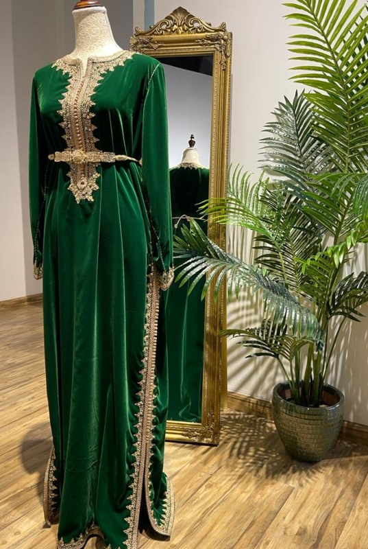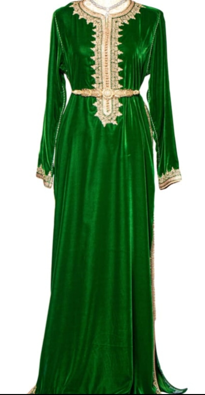 قفطان مخمل أخضر مطرز مع حزام القياس: M/L Z003