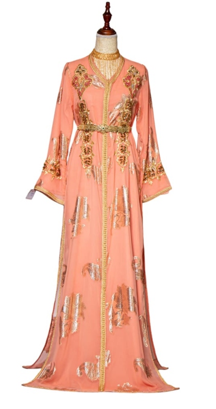 قفطان مطرز باليد و مطعم بالأحجار مع حزام