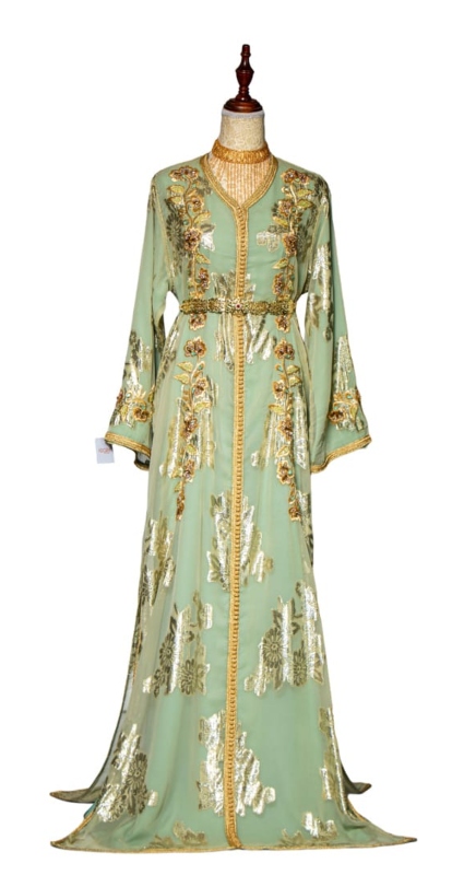 قفطان مطرز باليد و مطعم بالأحجار مع حزام