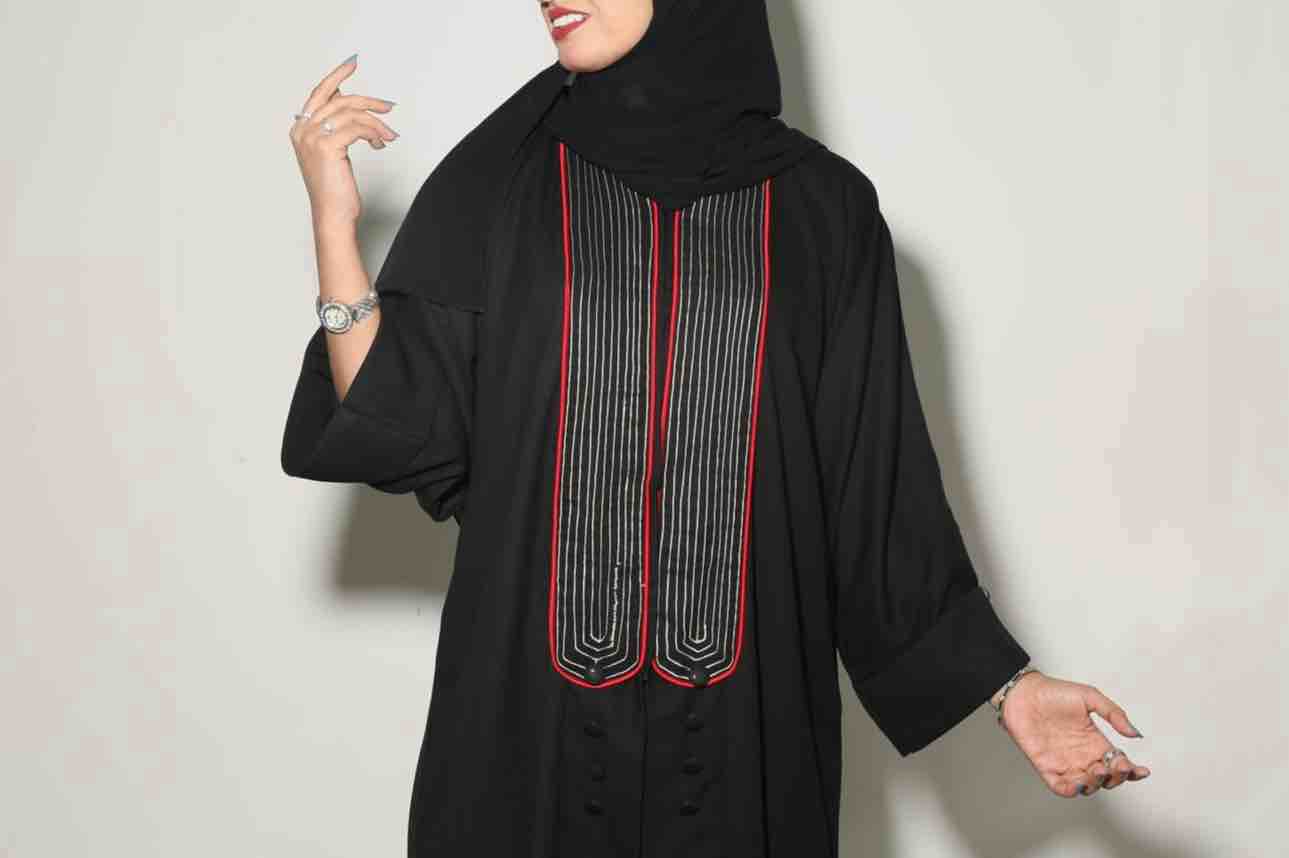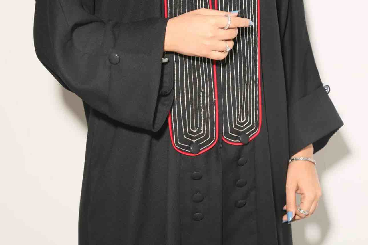 اسم العباية:الشموخ قصة العباية:عباية اسود بقصة عادية مع طقطق وبها كلفه مطرزة باللون لاحمر والبيج(تقدري تغيري الوان التطريز) الكم :واسع واكمام مقلوبه(يصير تخليه اسود او لون من اختيارك) مع زر لزينة الطرحة:دجى الليل اسود سادة (تقدري تغيري لون الطرحة مع لون التطريز)الطول وارين وربع والعرض27 *ميزة التصميم والقماش: *عملية جدا تنفع لدوامات واللبس اليومي *قماش كريب ملكي *سواد فاخر * ناعم *بدون لمعة طريقة الغسيل: في الغسالة على وضعية hand wash