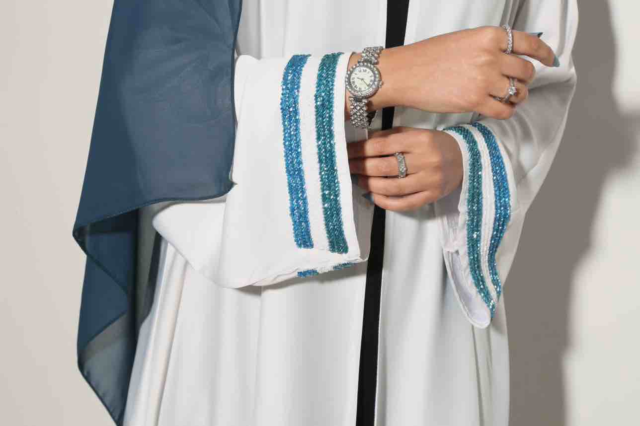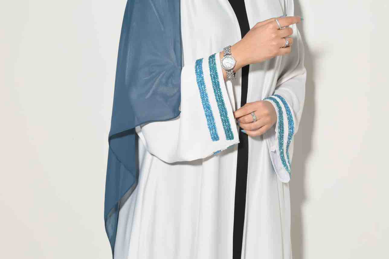 اسم العباية:ملاك قصة العباية:بشت مع اكمام مميزه بدون طقطق (تقدري تطلبيها مع طقطق) الكم: واسع مع شك يدوي اصلي لامع بلون تركوازي وابيض وتركوازي فاتح (تقدري تغيري لون الخرز) الطرحة:دجى الليل سادة نفس لون الخرز(تقدري تغيري لون الطرحة مع لون الخرز) طول الطرحة وارين وربع العرض27 * ميزة التصميم والقماش: *يناسب الطلعات والمناسبات *لمسة الحرير الناعم *بارد *طايح *قد لا يحتاج للكي طريقة الغسيل: الغسيل الجاف فقط⚠️