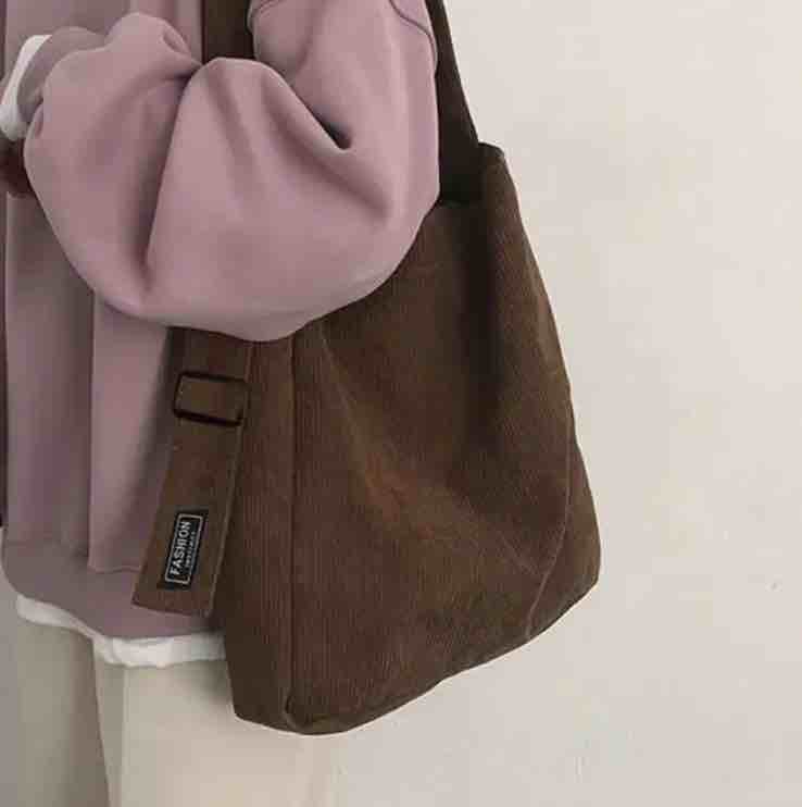 حقيبة كروس بودي كوردوروي ذات سعة كبيرة للنساء ، حقيبة كتف كلاسيكية ، فئة الطلاب ، مائة ، الخريف والشتاء ، جديدة
