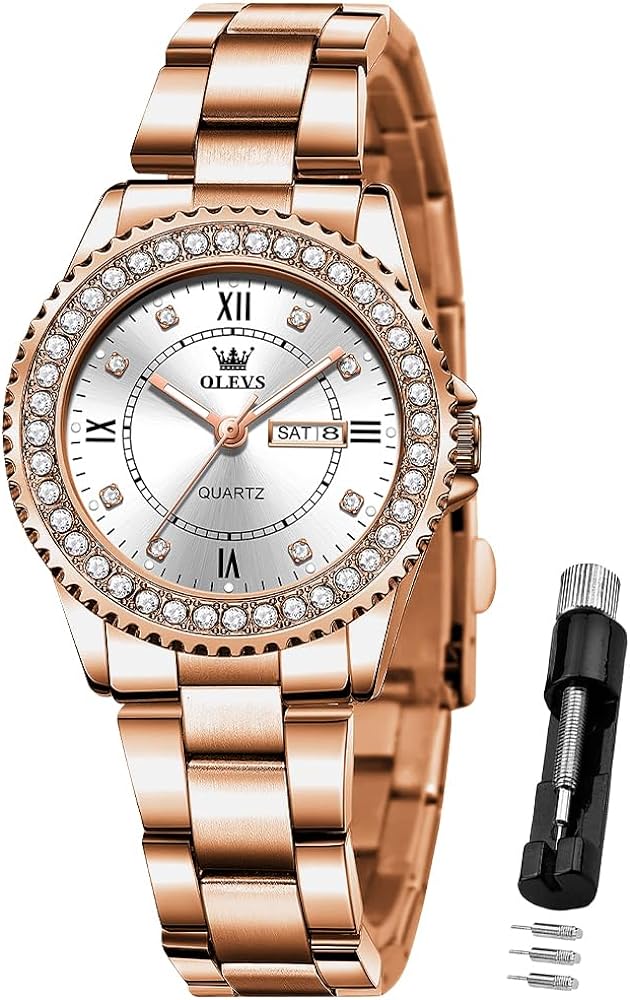 ساعات كوارتز تناظريه من الفولاذ المقاومة للصدأ، التاريخ واليوم مضيأن