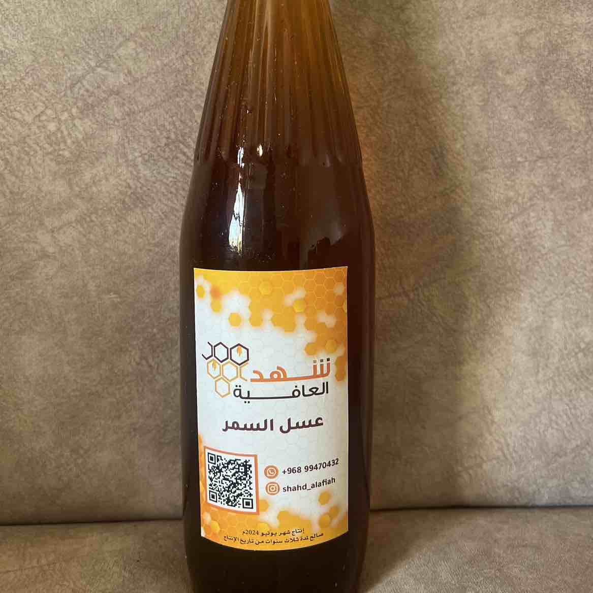 عسل سمر عماني تم تعبئته في مناحل شهد العافية مع ضمان الجودة . العبوة كيلو واحد في قنينة زجاجية.