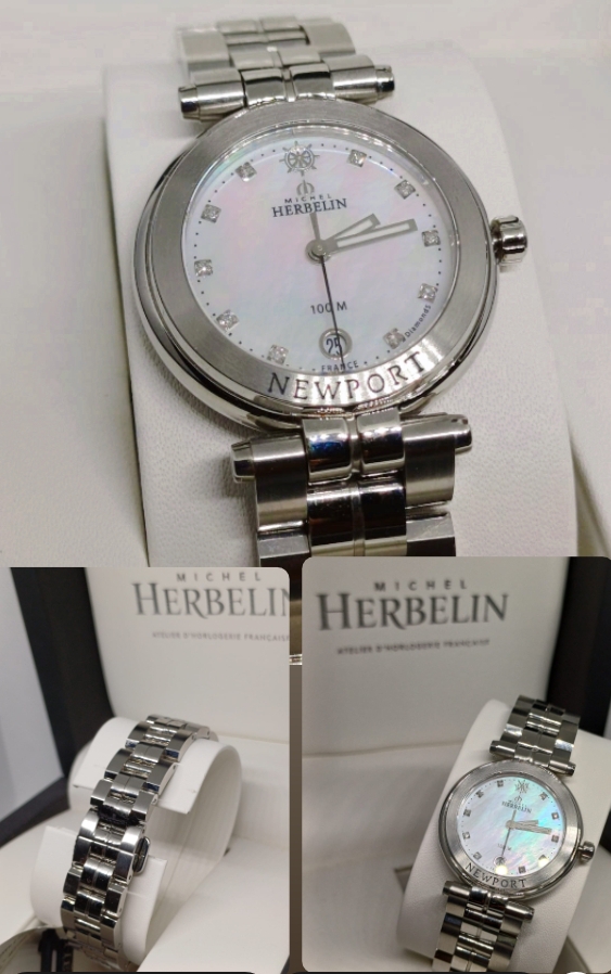 ميشيل هيربلين ساعة سويسرية مرصعه ب 12 حبة ألماس قياس 30 مم جديدة بكافة المرفقات