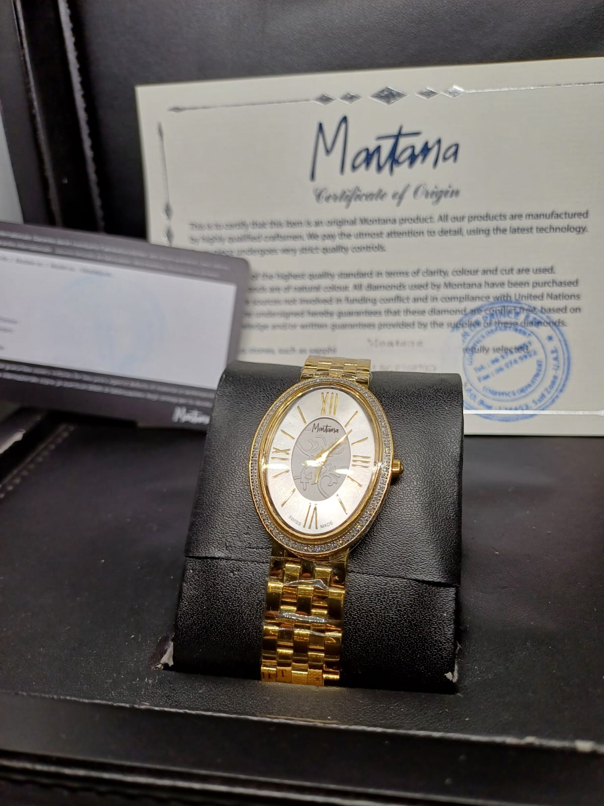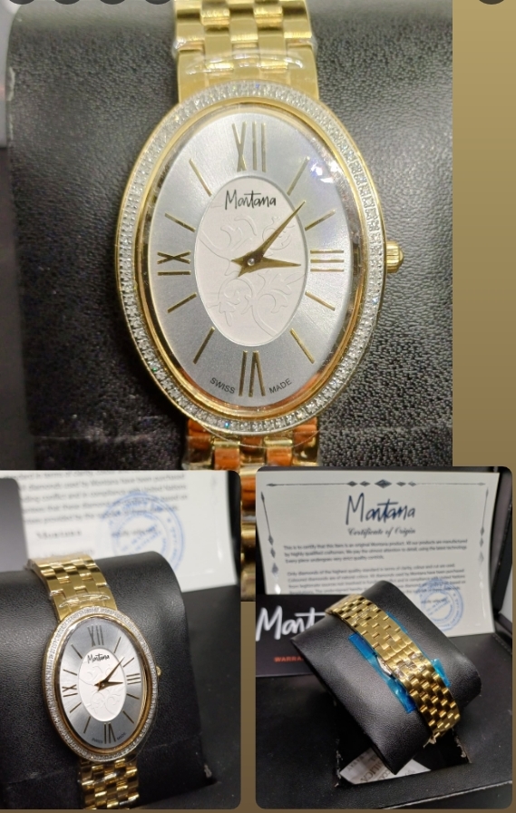 ساعة مونتانا مرصعه ب 72 حبة ألماس بالمينا الصدفي قياس 35 طولي للمناسبات واللبس اليومي جديدة بكافة المرفقات