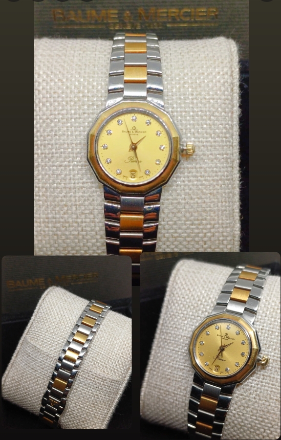 ساعة بوم مارسيه كلاسيك كالجديد قياس 25 الطوق ذهب والحزام ستيل وذهب عيار 18 روز جولد ومرصعه ب 12 حبة ألماس داخل المينا للبس اليومي