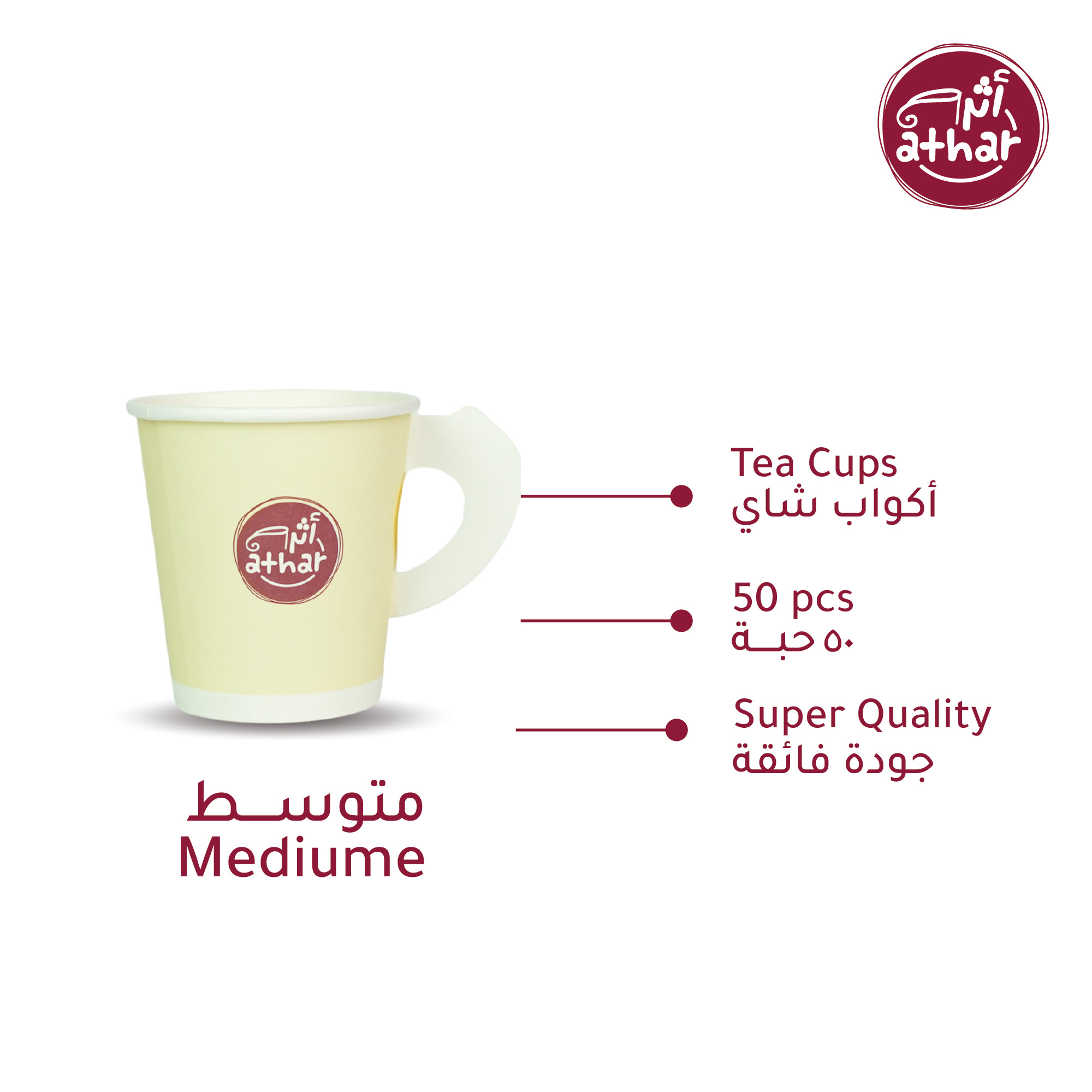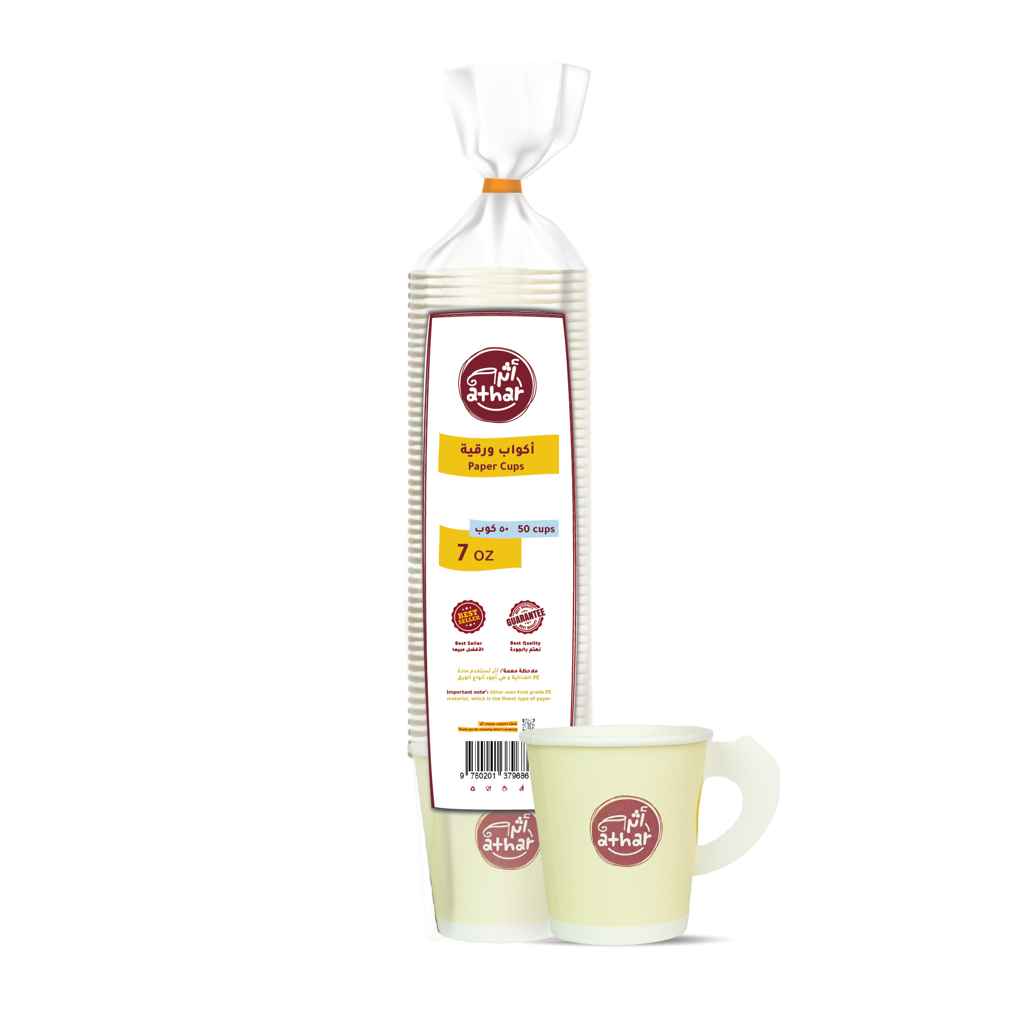 عدد القطع في العبوة: تحتوي العبوة على 50 كوب، ما يجعلها خياراً عملياً للمناسبات أو الاستخدام اليومي.