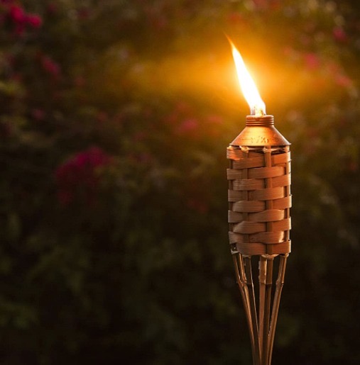 مشاعل خشبیة مصنوعة یدویا من البامبو مزودة بغطاء یسھل عملیة إطفاء الشعلة ، مزودة بوعاء معدني أسود توضع به كمیة مناسبة من زیت المصابیح تعادل ١٧٠ ملم ، یتم امتصاصها بفضل الفتیلة المصنوعة من القطن، سھلة الحمل ، المشاعل متوفرة بطول ١٢٠ سم (العرض غير شامل زیت المصابيح)
