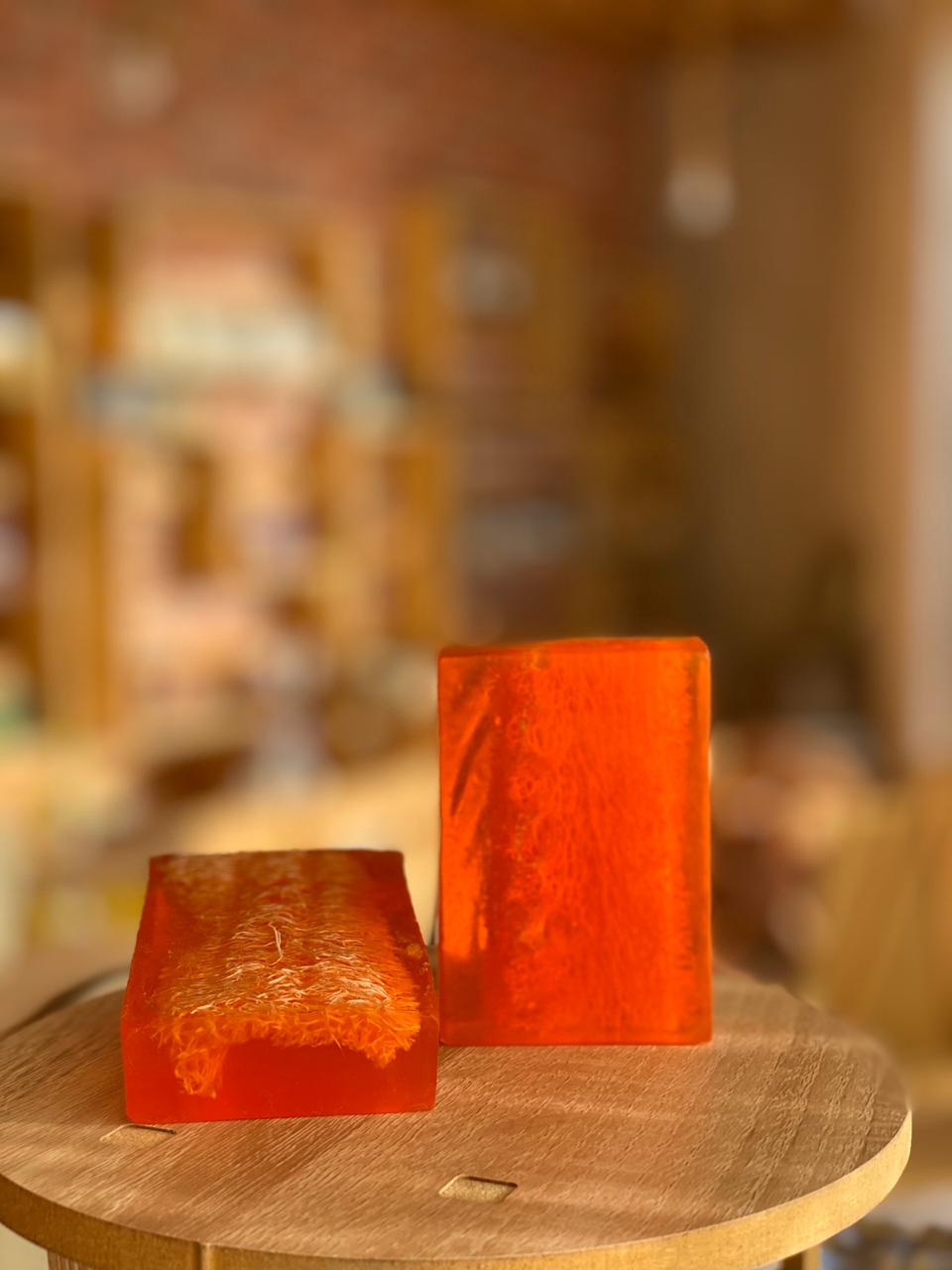صابونة بالليفة الطبيعية يمنح الجسم ترطيب وتعطير وسنفرة مع وجود الليفة الطبيعية داخل الصابونة لاتحتاج الى ليفة للفرك لطيفة على البشرة لاتسبب الجفاف تتوفر بعدة نكهات مثل الدراق و التفاح واللافندر وعشبة الليمون و الجاردينيا والمسك والزعفران والكرز والفراولة تحفظ في مكان بارد وجاف بعيدا عن اشعة الشمس المباشرة