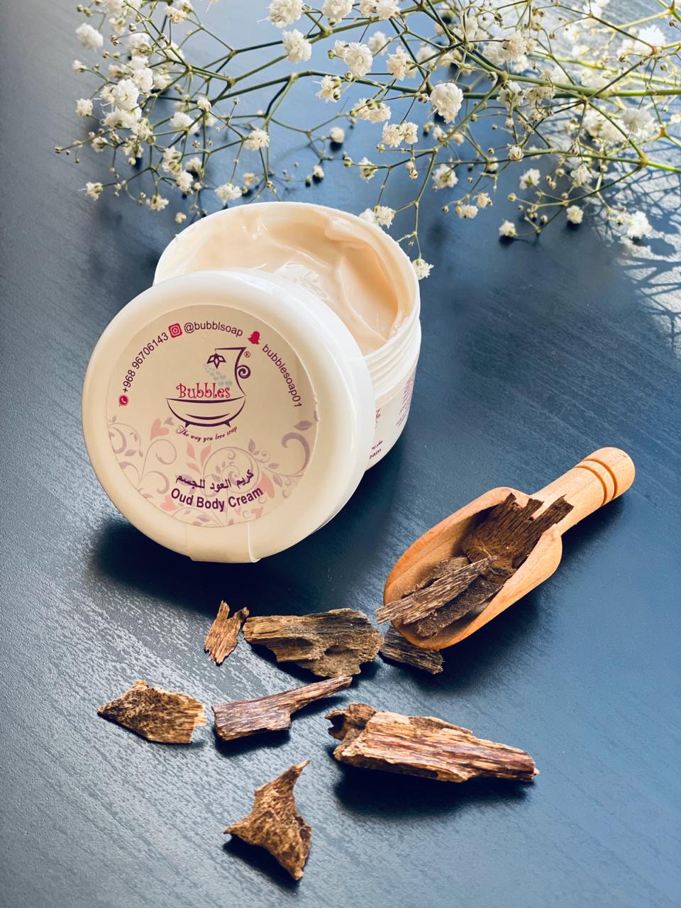 كريم العود الطبيعي مصنوع من ثلاث انواع من الزبدات الطبيعية وزيت اللوز الحلو وزيت الأفوكادو غني بالفيتامينات و والمعادن لبشرة صحية.