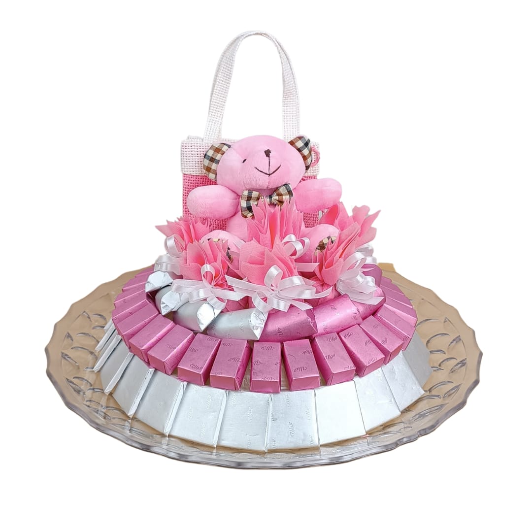 صينية مواليد بنت تحوي على ٢ كج من الشوكليت المغلف الايطالي والسويسري بحشوات مختلفة