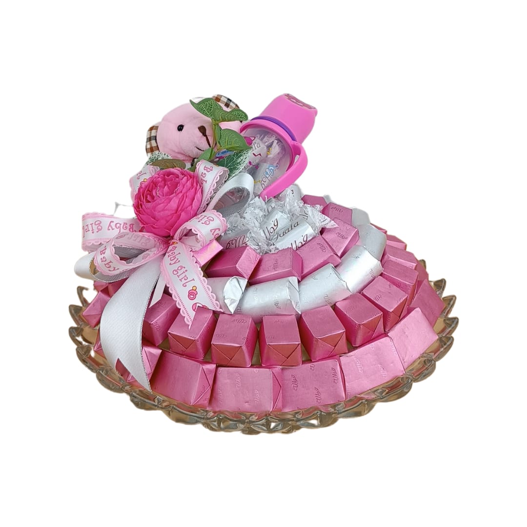 صينية مواليد بنت تحوي على الشوكليت المغلف