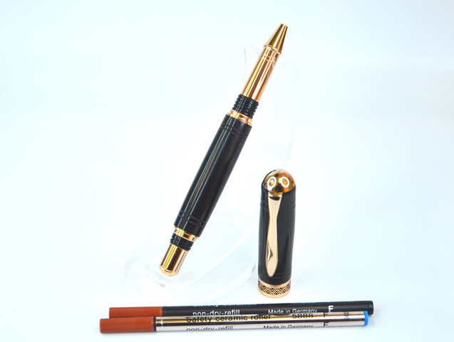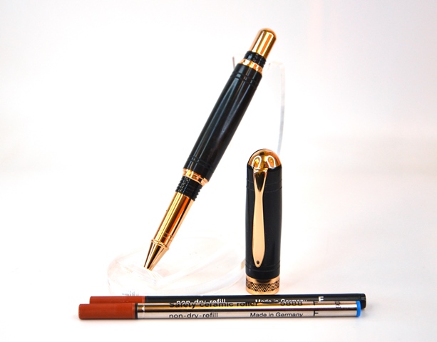 قلم مصنع يدويا في ولاية بهلا من خشب شجرة الأبنوس .. والذي يعد من أغلى أنواع الأخشاب ويتميز بصلابته وبلونه الاسود الداكن وتحمله لدرجة التلميع المكثف .. مع تلميعه بمواد صديقة للبيئة محضره منزليا من مواد طبيعية .. يتميز القلم بملمس ناعم وبلمعان يظهر مدى جودة العمل .. يأتي مع صندوق مصنع يدويا من الجلد الماروني مع هدية عبارة عن مذكرة صغيرة